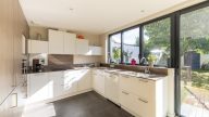 Ce bien se compose d'une entrée, vaste réception avec cuisine équipée ouverte et de plain pied sur beau jardin, 3 chambres, bureau, salle de bains, garage et dépendance.