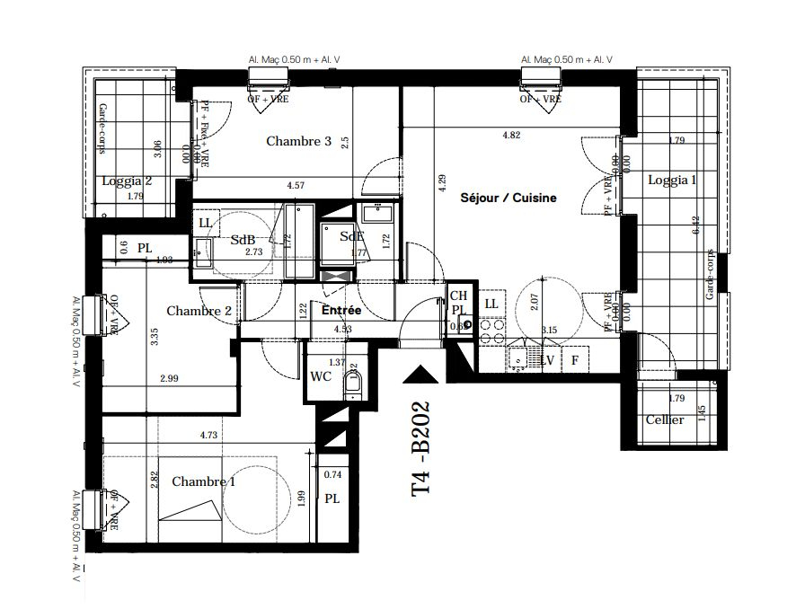 Il offre, une entrée avec rangements, une pièce de réception avec cuisine à réaliser à votre image prolongée par une vaste terrasse couverte, 3 chambres avec placards dont une avec accès à un balcon, une salle de bains, une salle d'eau et WC séparés.
