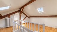 A l'étage supérieur, un palier dessert trois chambres spacieuses, une salle de bains avec WC. Au dernier étage, des combles aménagé pouvant servir de chambre.