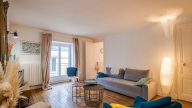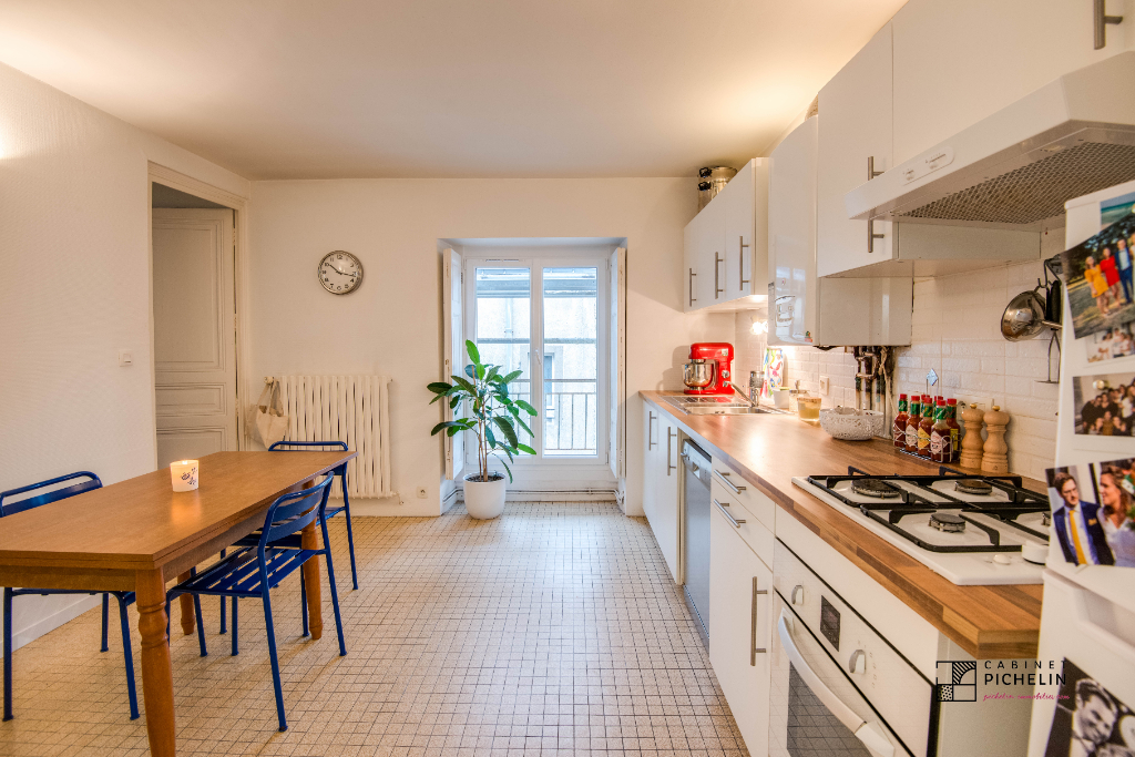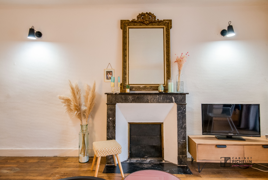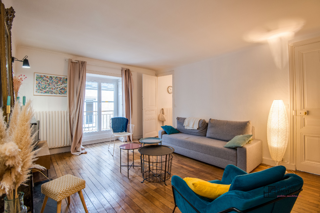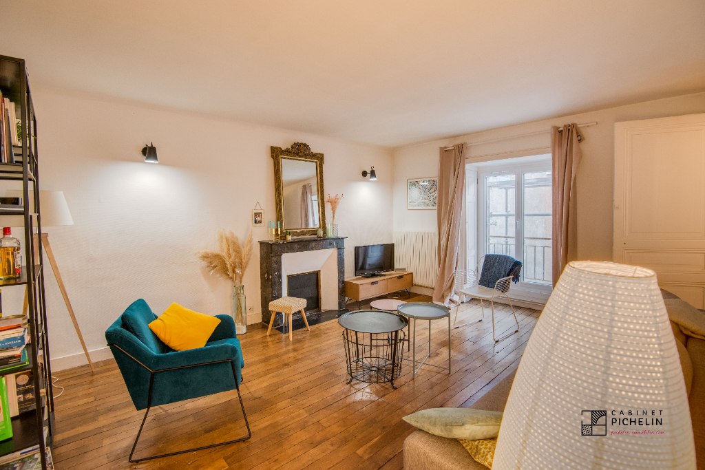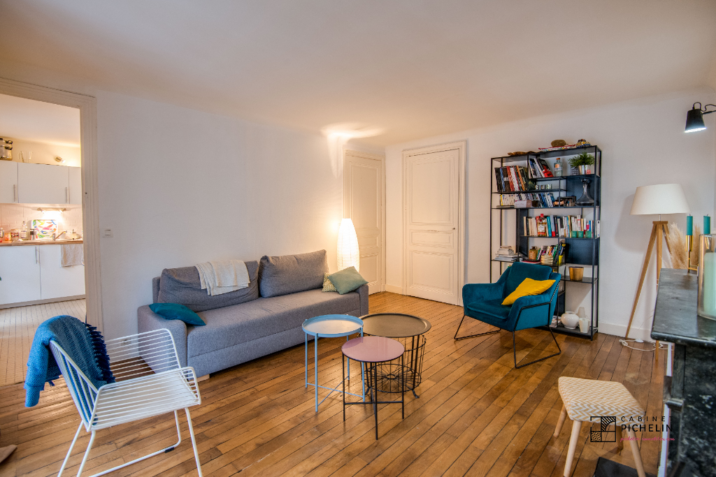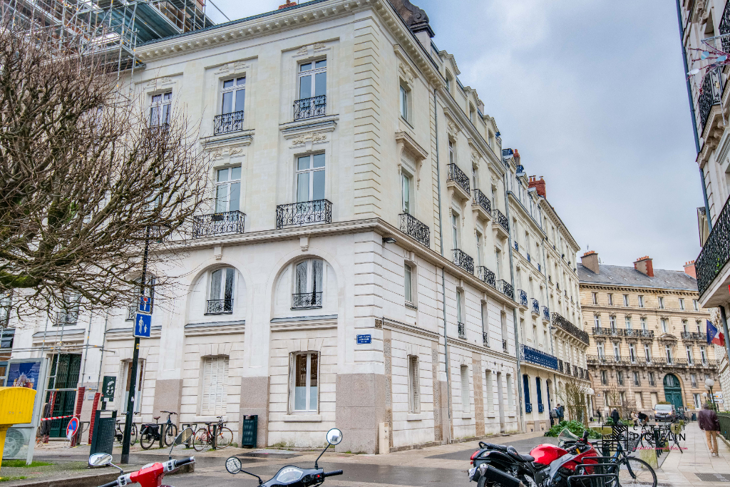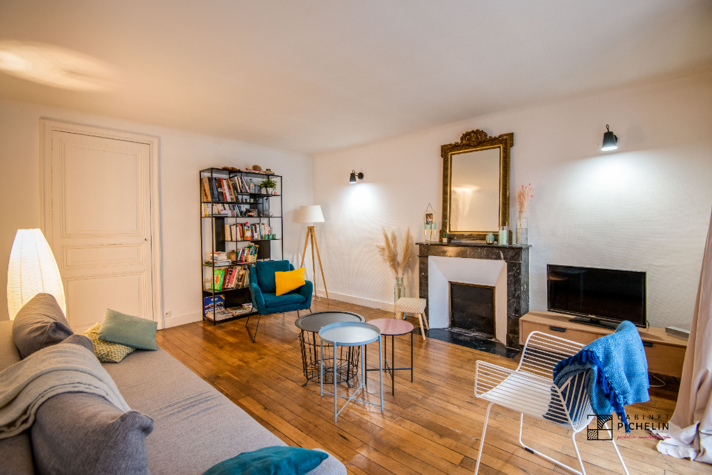 Au calme, à 2 pas du tram et des commerces, au 4ème et dernier étage avec ascenseur d'un immeuble de caractère et de standing, appartement de type 2 de 70 m², bon état, offrant vaste réception sur parquet avec cheminée, cuisine équipée (four, plaque 4 feux gaz), chambre, salle de bains avec WC.