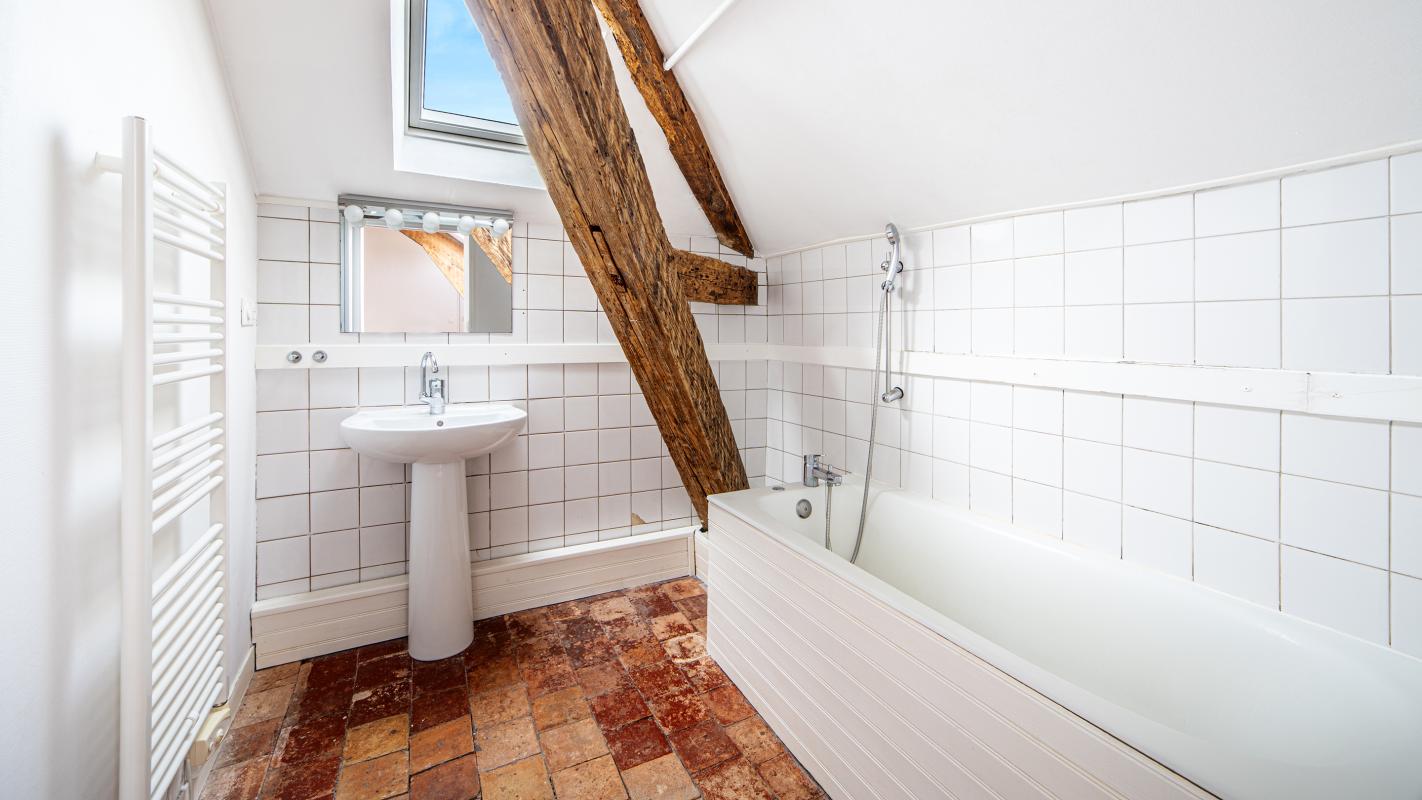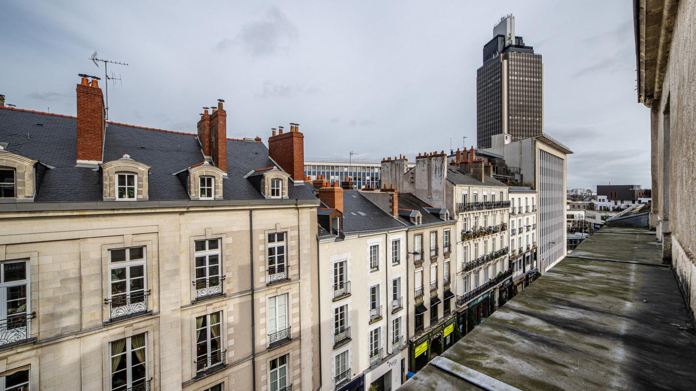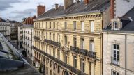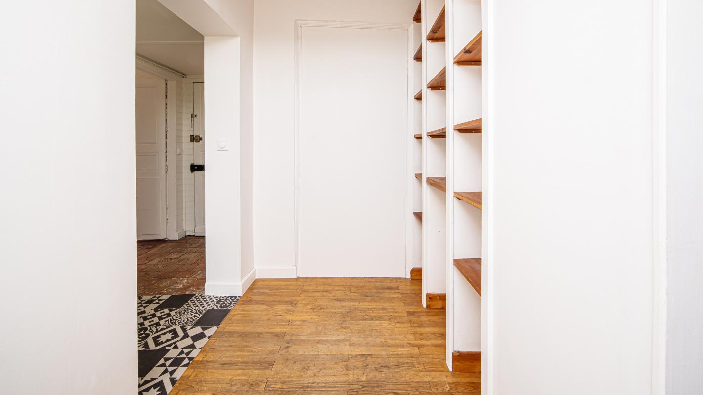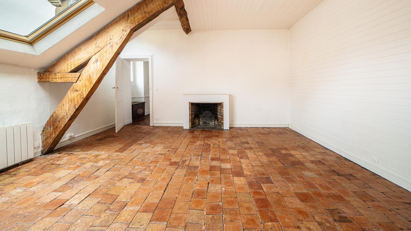 Au 4ème étage d'un immeuble bourgeois de caractère, T2 bis en bon état, plein de charme et très ensoleillé, au calme, offrant de beaux volumes : entrée, bureau, réception sur tomettes avec cheminée, cuisine, salle de bains, WC et chambre avec placard.