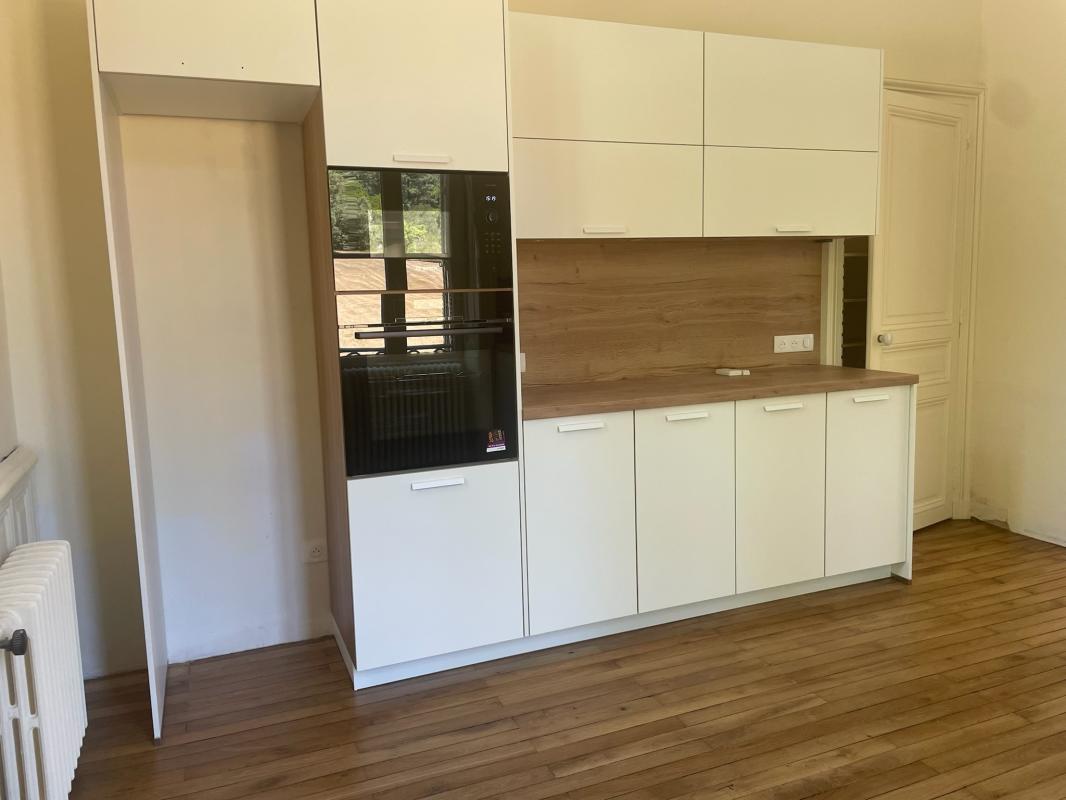 Cuisine aménagée et équipée (four, plaques induction, hotte, lave-vaisselle et micro-ondes).