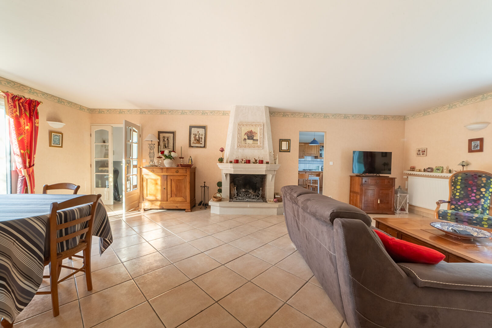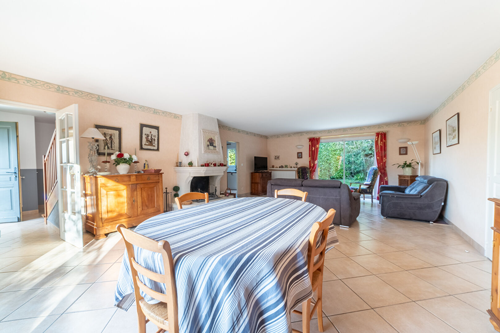 Entrée avec rangements, vaste réception avec cheminée donnant sur terrasse et jardin, cuisine équipée, arrière cuisine, 5 chambres dont suite parentale au rdc avec salle d'eau, salle de bains et 2 WC.
