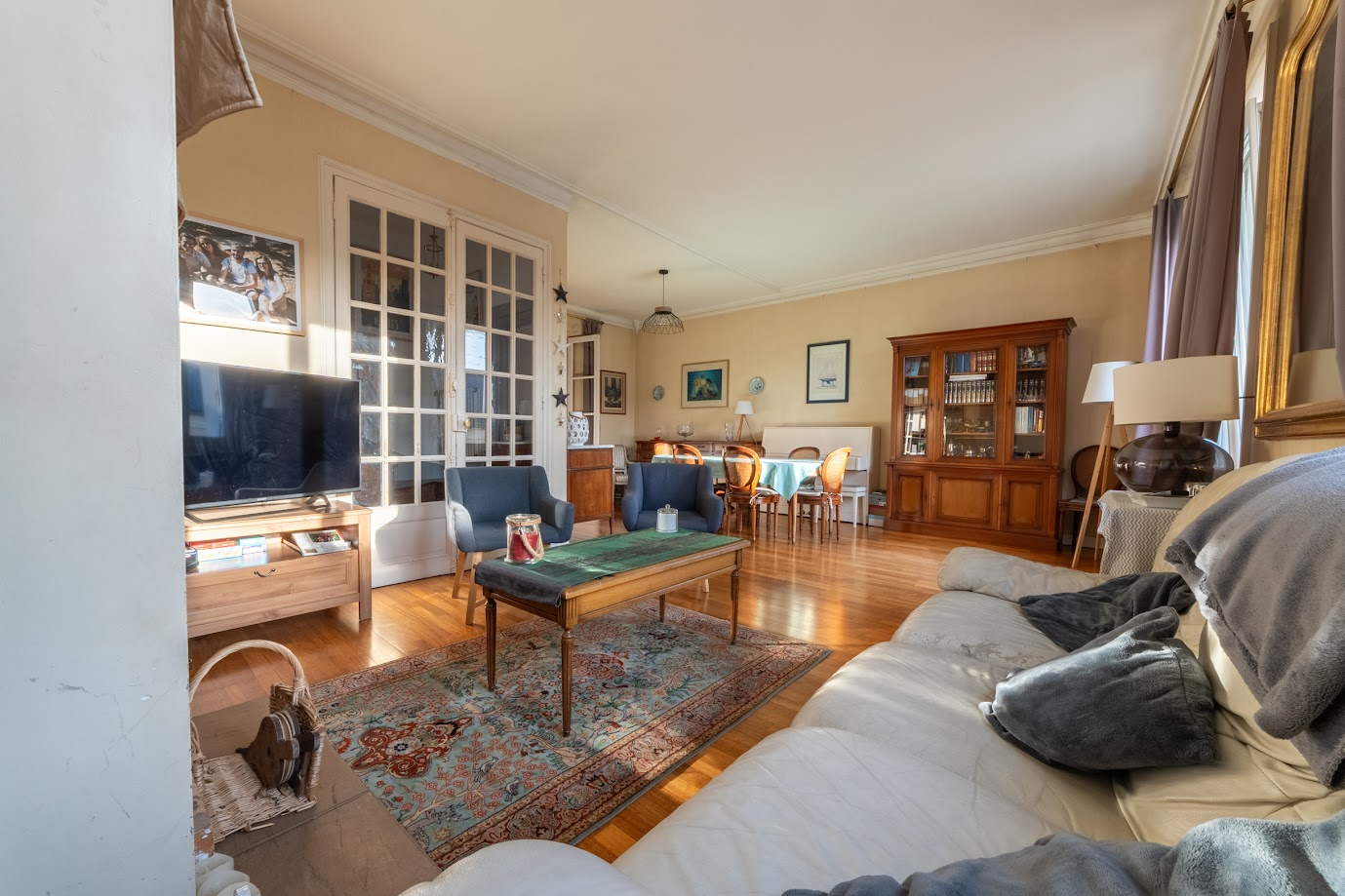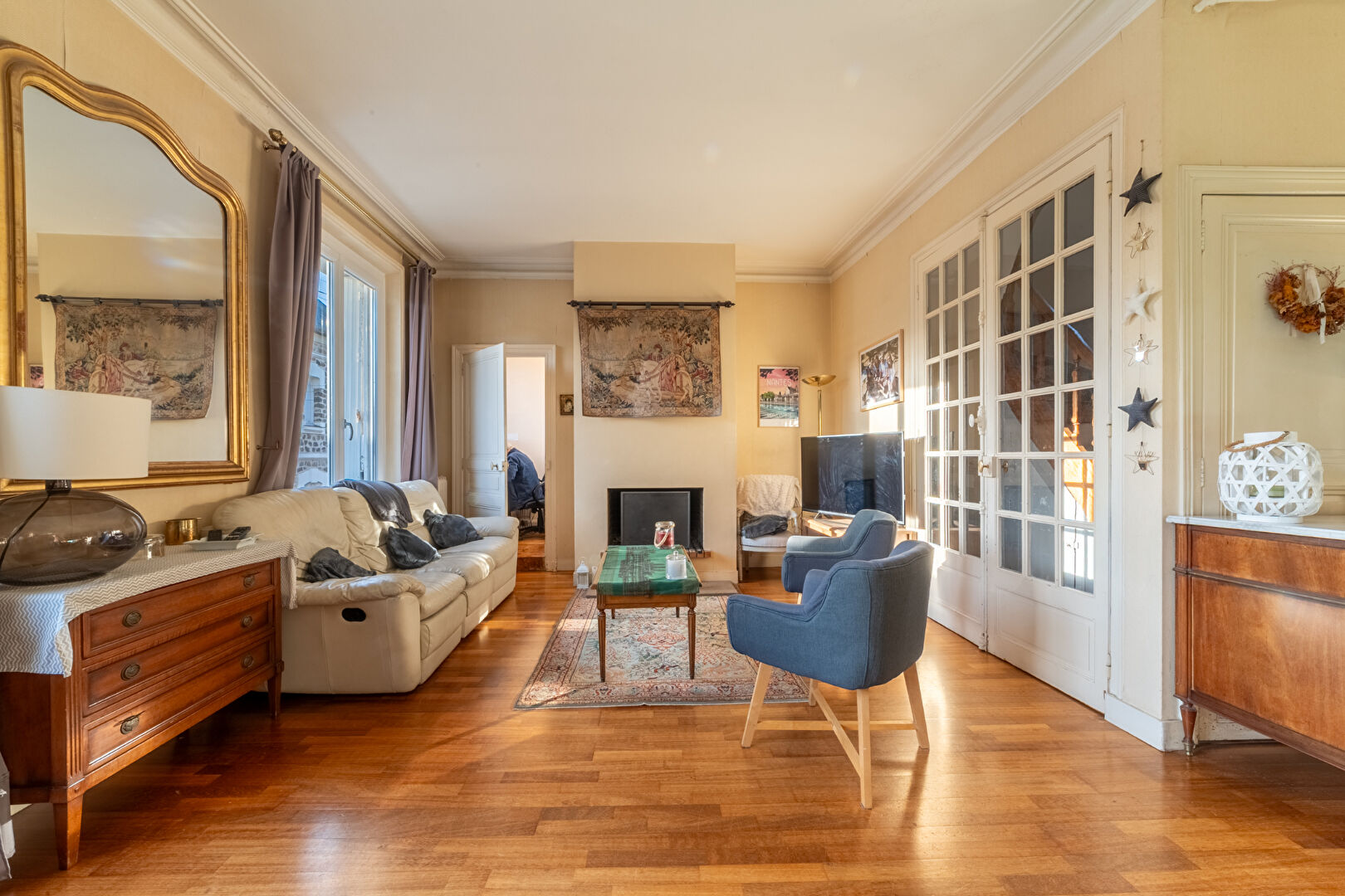 Elle séduit par ses volumes au charme authentique avec parquets et cheminée, sa belle hauteur sous plafond et sa fonctionnalité.