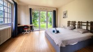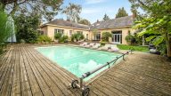 Entrée avec rangements, double réception 70 m² avec cheminées, poutres apparentes et hauteur cathédrale de plain-pied sur terrasse, piscine et sauna biens exposés sans vis-à-vis, vaste cuisine équipée, 8-9 chambres chacune avec salle d'eau et WC, dressing, bureau, bibliothèque et lingerie.