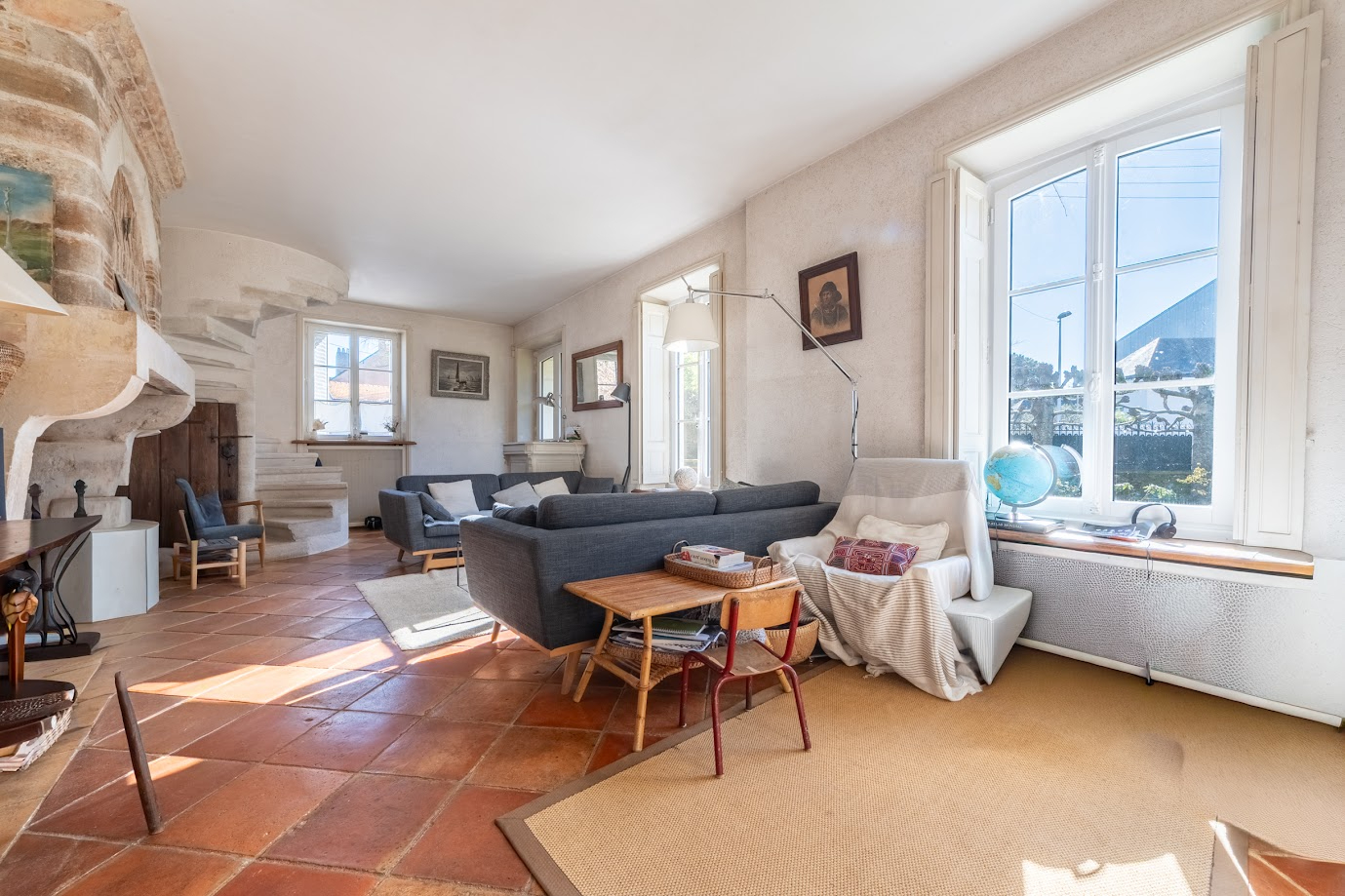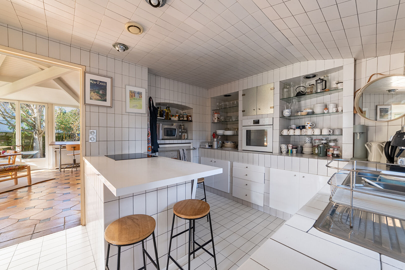 Entrée, double réception de prêt 75 m² avec cheminée d'antan fonctionnelle donnant sur magnifique jardin paysagé et arboré sans vis-à-vis, cuisine équipée, 5 chambres dont deux de plain-pied, bureau, salle de bains, 2 salle d'eau, lingerie et 3 WC.