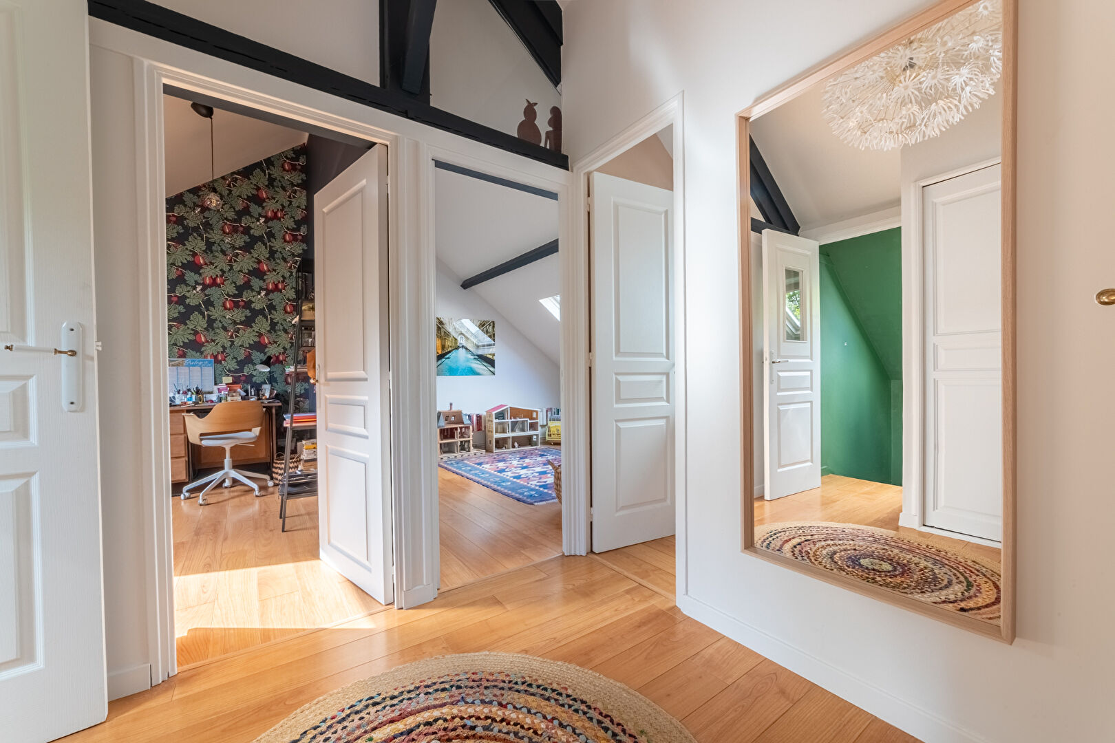 A l'étage, l'espace nuit propose une distribution parfaitement pensée pour la vie de famille 5 chambres confortables dont une suite parentale alliant confort et intimité, un bureau ou salle de jeux, ainsi qu'une salle de bains et une salle d'eau.