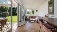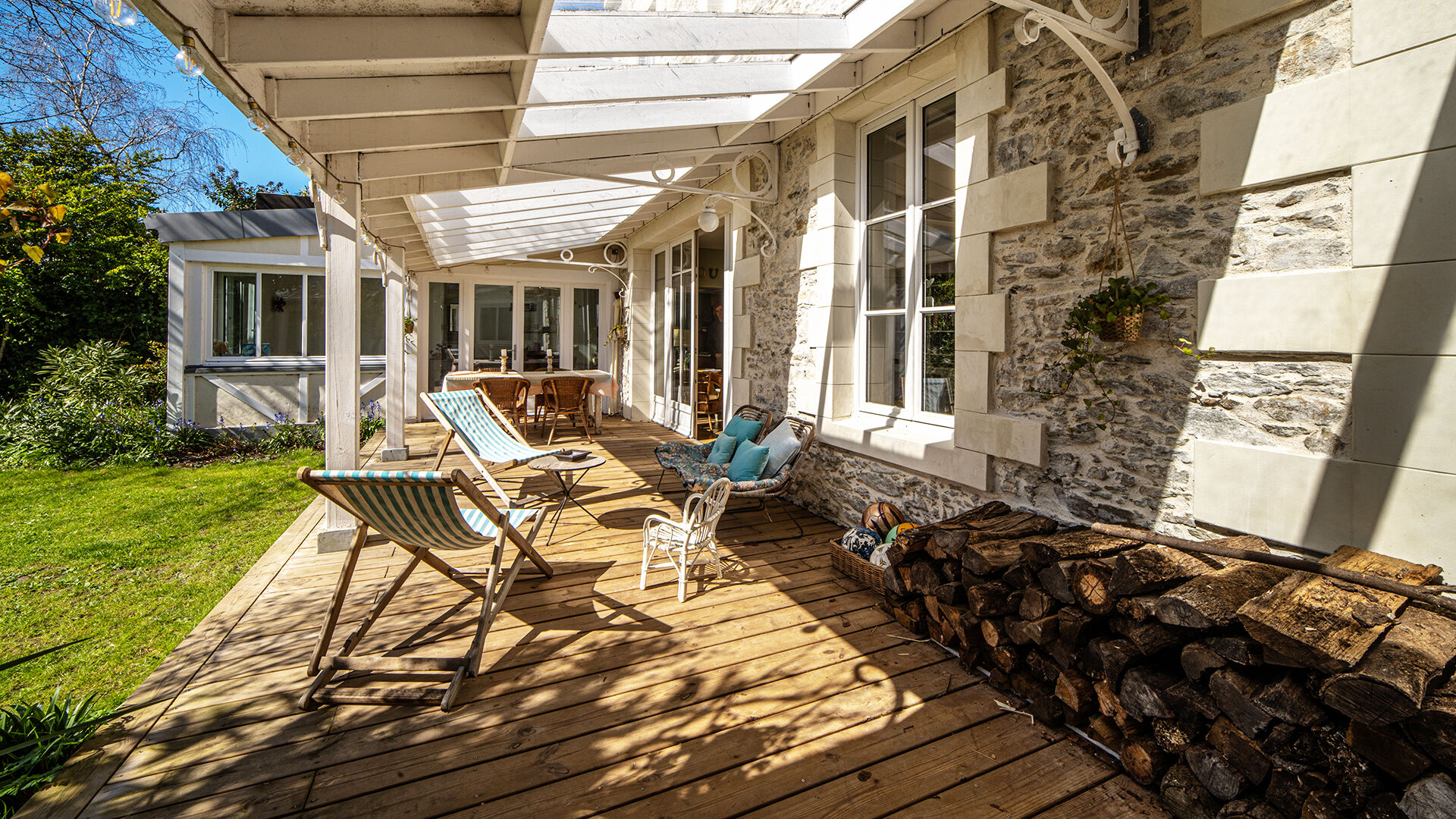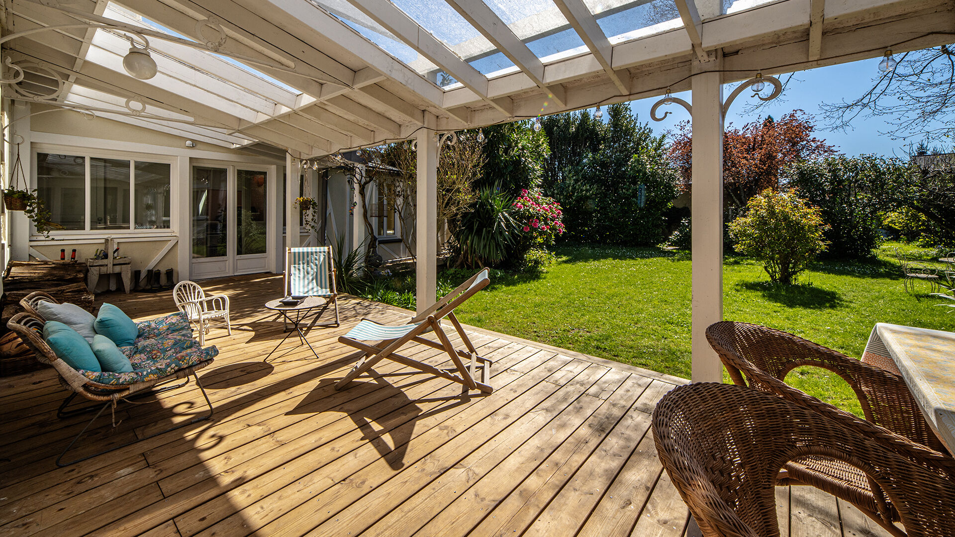 A l'extérieur, la terrasse en bois prolonge les beaux jours, le jardin piscinable abrite une serre et une dépendance aménagée avec accès indépendant permettant un revenu locatif de 550 euros par mois, de loger une jeune fille au pair ou de télétravailler en toute tranquillité.