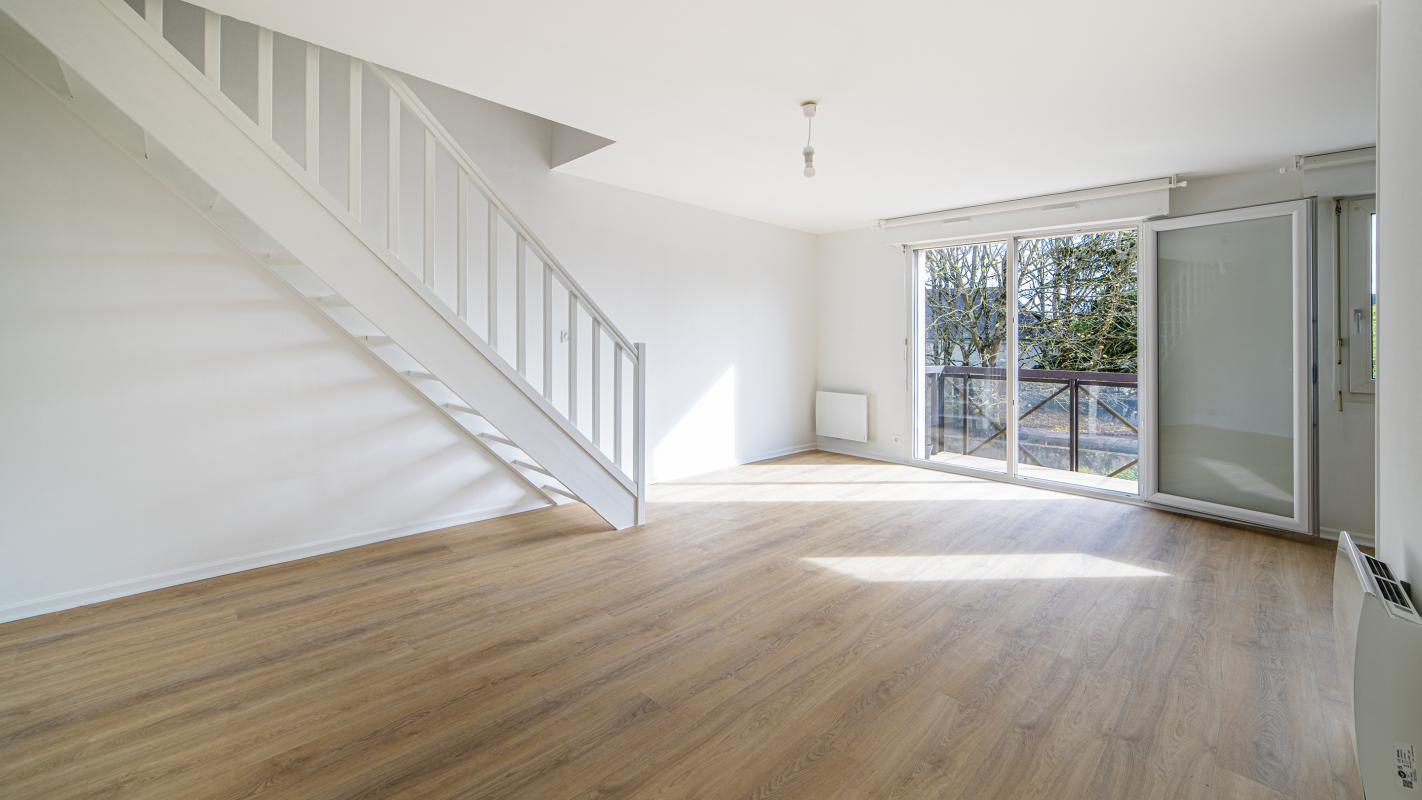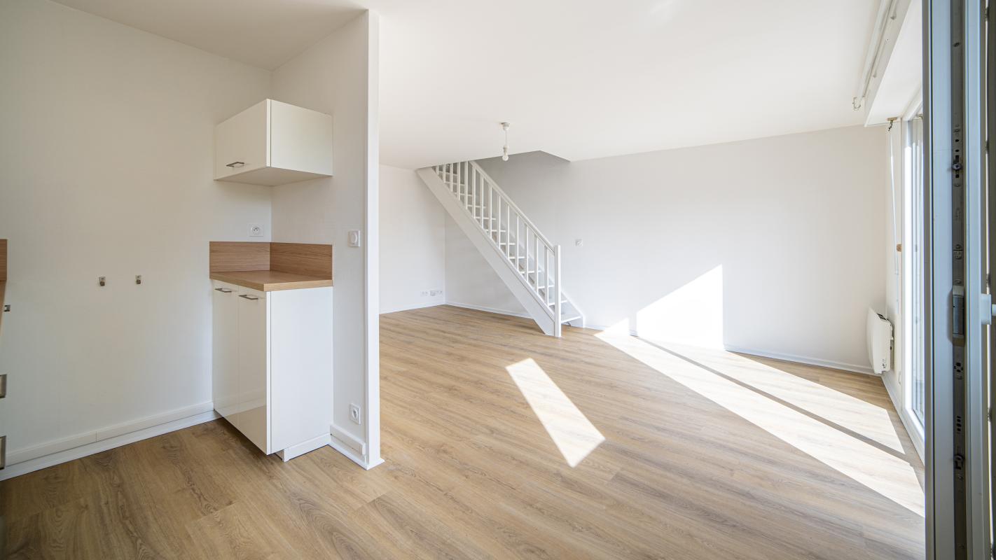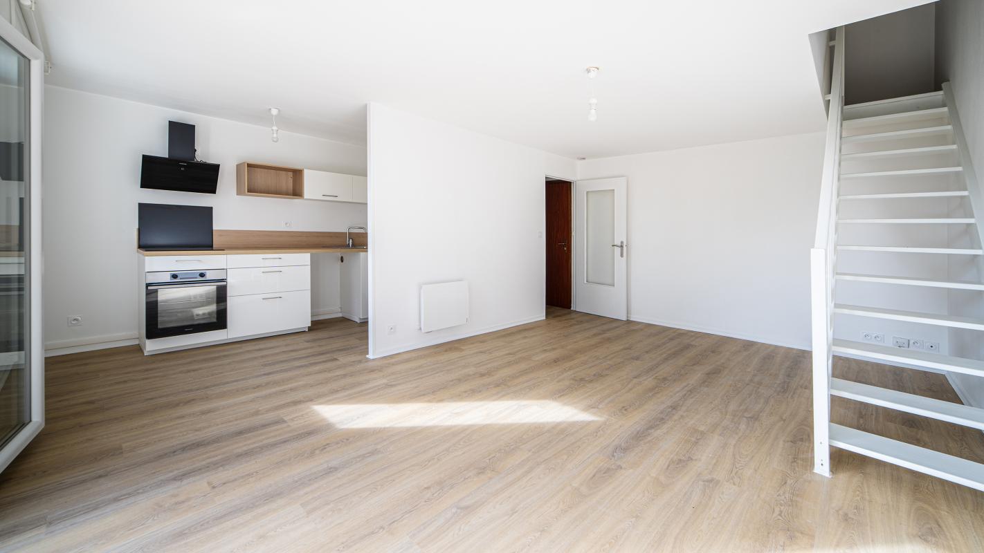 Ce T3 en duplex de 65 m² au sol rénové offre calme et sérénité, au premier étage d'une copropriété bien entretenue, bénéficiant d'un jardin de copropriété. Ce bien de qualité baigné de soleil avec vue dégagée, se compose de : entrée avec placard, salon - séjour avec cuisine ouverte équipée, donnant sur balcon-terrasse, deux chambres avec placards, salle de bains et WC séparés. Parking en sous-sol et cave.