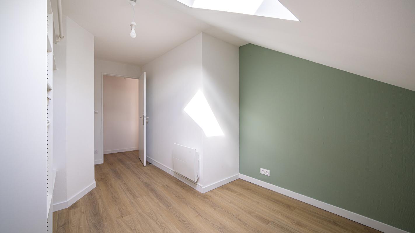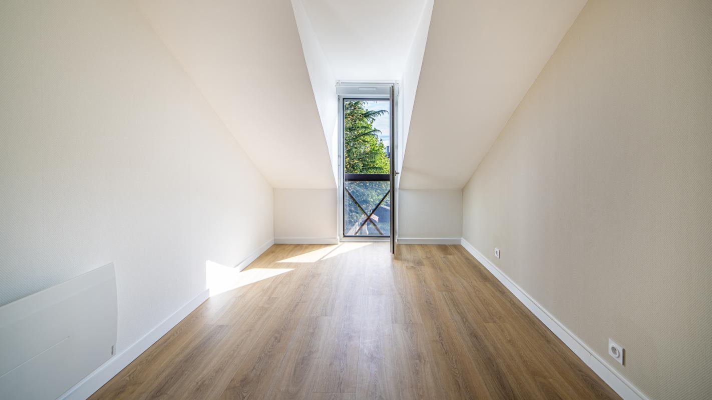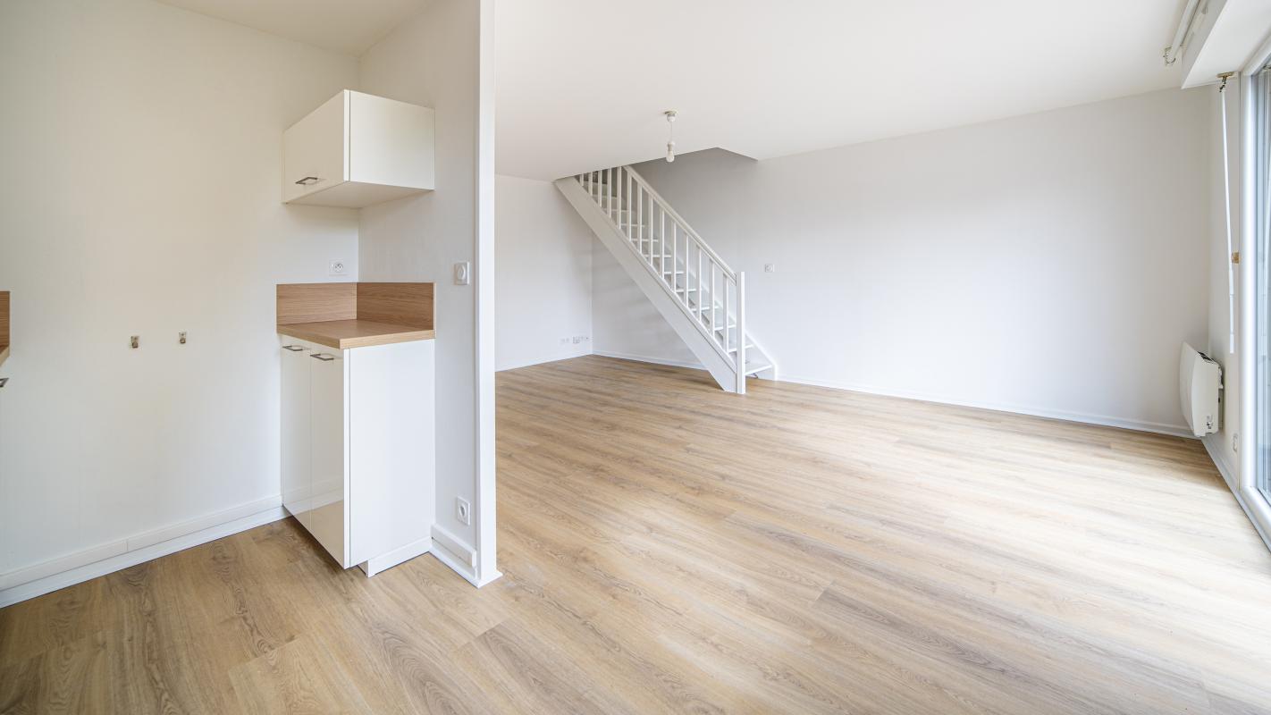 Ce T3 en duplex de 65 m² au sol rénové offre calme et sérénité, au premier étage d'une copropriété bien entretenue, bénéficiant d'un jardin de copropriété. Ce bien de qualité baigné de soleil avec vue dégagée, se compose de : entrée avec placard, salon - séjour avec cuisine ouverte équipée, donnant sur balcon-terrasse, deux chambres avec placards, salle de bains et WC séparés. Parking en sous-sol et cave.