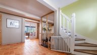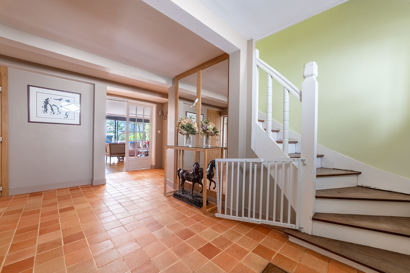 Au rez-de-chaussée, l'entrée dessert une double pièce de réception sur parquet, sublimée par une cheminée fonctionnelle. Cet espace de vie s'ouvre sur une grande terrasse et un beau jardin exposé plein sud, intelligemment équipé d'un arrosage alimenté par la pompe du puit. Une cuisine aménagée et équipée, ainsi qu'un WC avec lave-mains viennent parfaire ce niveau.