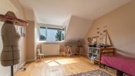 L'espace nuit est idéalement distribué sur les niveaux supérieurs. Le premier étage propose quatre chambres, salle de bains, dont une élégante suite parentale avec placard et salle d'eau privative. Un demi-étage dévoile une pièce supplémentaire très pratique, parfaite pour une salle de jeu ou une chambre d'appoint. Enfin, le deuxième étage accueille deux grandes chambres et une salle d'eau avec WC.