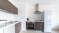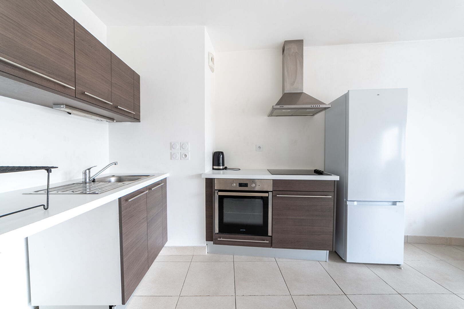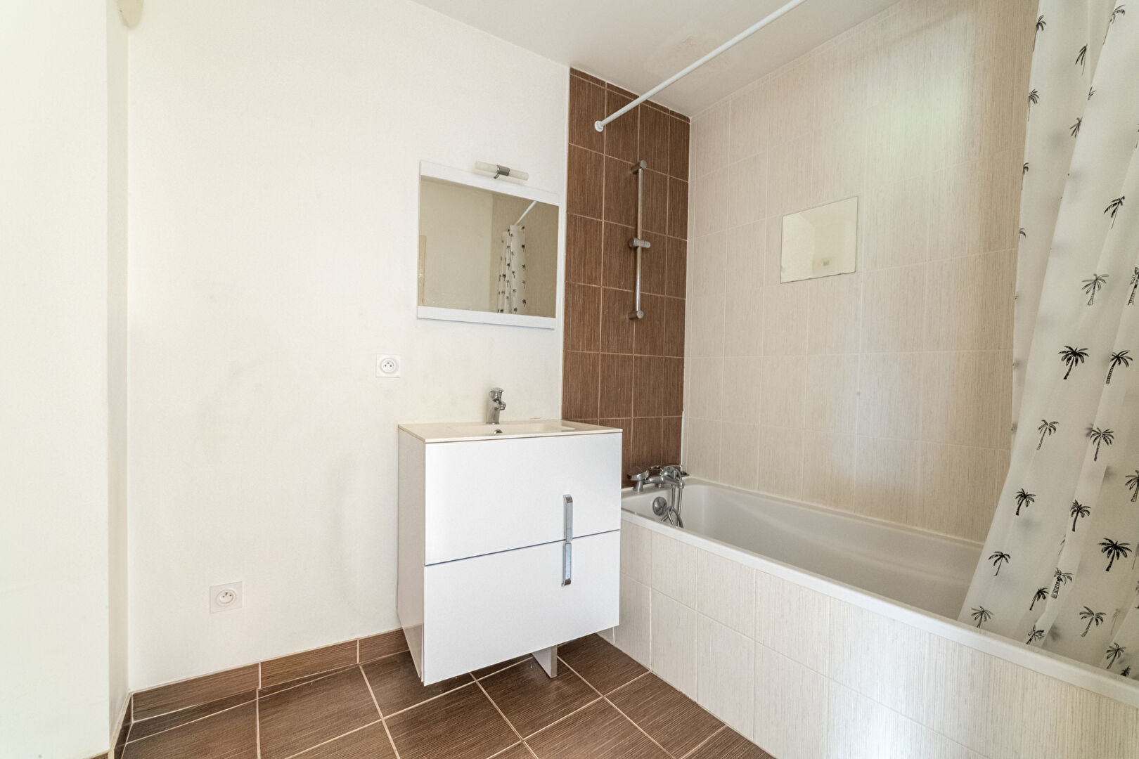 Appartement de type 3 inondé de soleil bénéficiant d'une entrée ouvrant sur réception avec cuisine aménagée et équipée ouverte sur petite terrasse sud-ouest, 2 chambres, salle de douche avec WC.