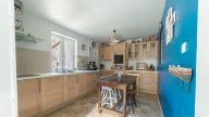 Elle offre, au rez-de-chaussée, une vaste pièce de vie (36m²) avec un poêle à bois, une cuisine aménagée et équipée, WC indépendants avec lave-mains.