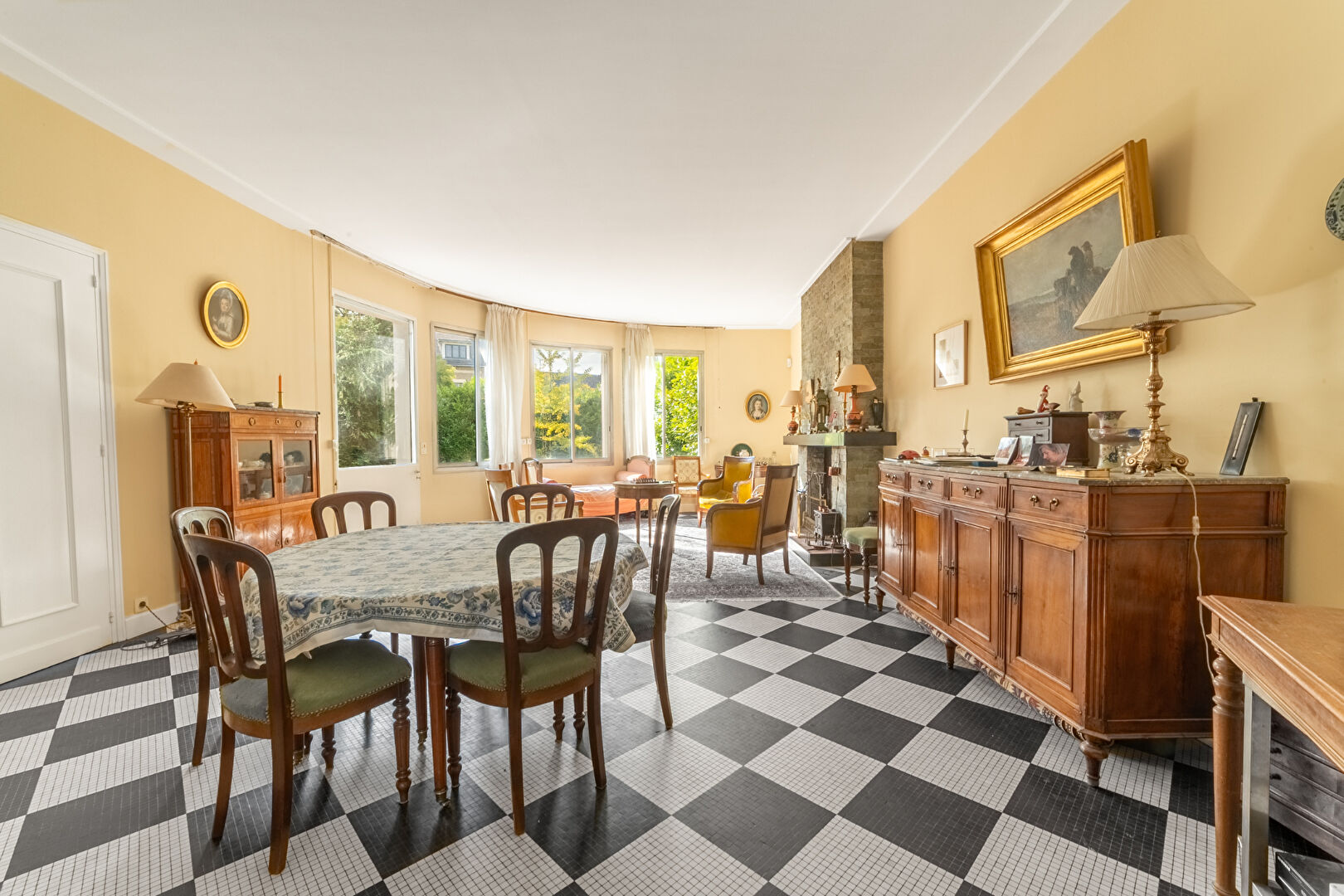 Entrée avec rangements, vaste réception avec cheminée donnant sur terrasse et jardin sans vis-à-vis, salle à manger, cuisine équipée, 4-5 chambres, bureau, salle de jeux, 2 salles de bains, salle d'eau, lingerie et nombreux rangements.