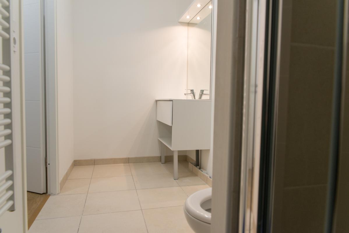Nantes Saint Pasquier, au calme absolu, aux pieds des commerces, des écoles, des transports et des commerces, au 2ème et dernier étage d'un immeuble de grand standing de 2019, superbe T1 bis inondé de lumière et fonctionnel. Ce bien de grande qualité vous offre entrée avec placard, belle pièce de vie donnant sur balcon-terrasse est, cuisine aménagée (plaques et réfrigérateur), salle d'eau avec WC. Accessibilité PMR. Plafond de ressources PINEL