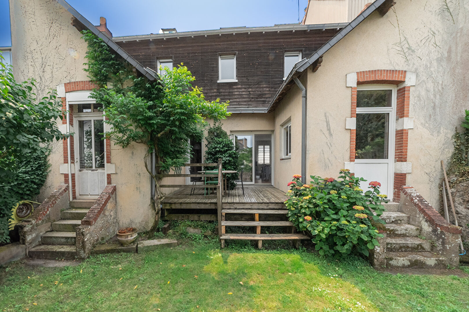 Entrée, vaste réception avec poêle de plain-pied sur terrasse et jardin de ville, cuisine équipée, 4 chambres dont suite parentale avec salle d'eau, salle de bains, lingerie et 3 WC.