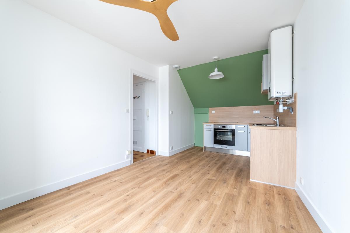 Baigné de soleil grâce à son exposition Sud, il se compose d'une entrée, d'un agréable salon avec cuisine équipée ouverte, d'une spacieuse chambre de 20 m² au sol, ainsi que d'une salle d'eau avec WC.