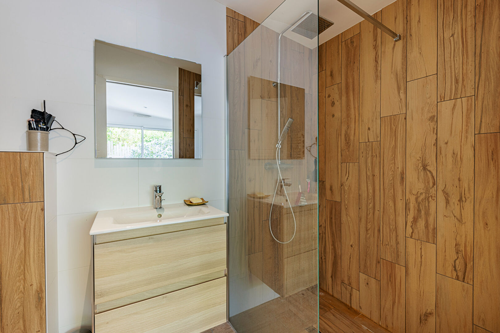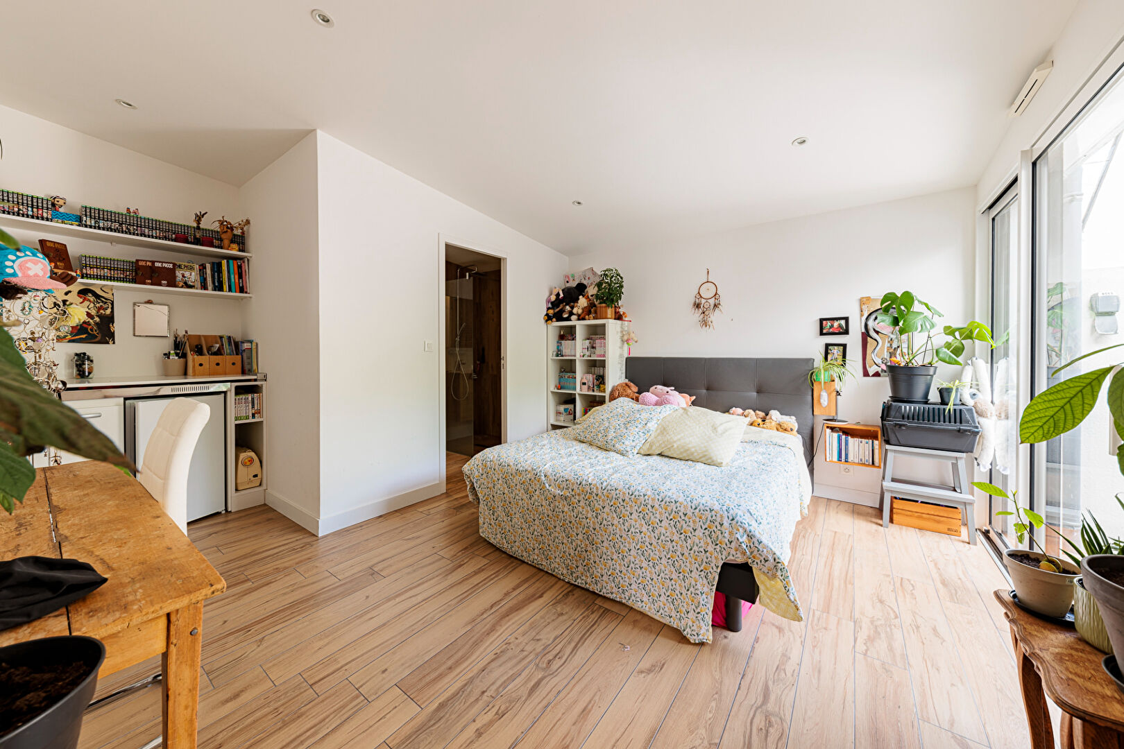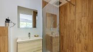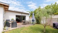 Entrée avec placards, vaste réception avec cuisine équipée de plain-pied sur terrasse et jardin sud sans vis-à-vis, 2 suites parentales avec dressing et salle d'eau, lingerie et deux WC. Douche extérieure. (4.42 % honoraires TTC à la charge de l'acquéreur.)
