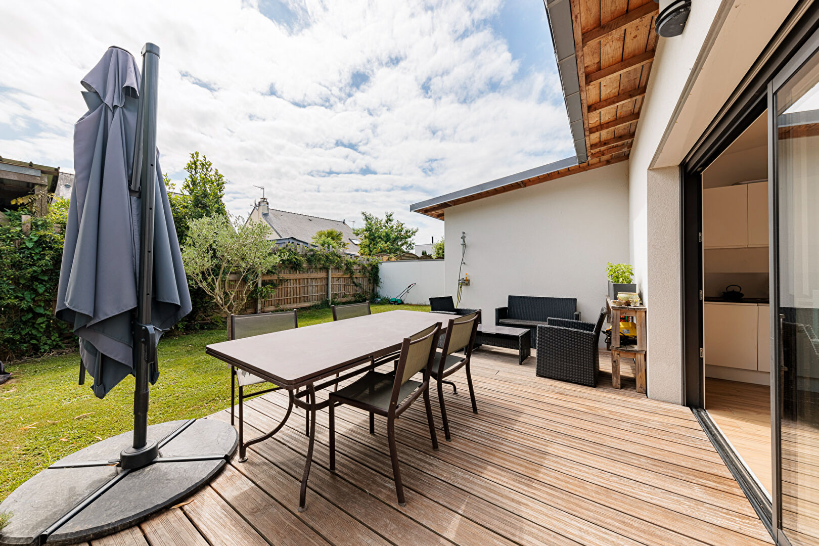 Orvault - Petit Chantilly : Au calme absolu, au sein d'un quartier familial et verdoyant, à deux pas des transports, des commerces et des écoles, maison d'architecte de 2017 en second rideau intégralement réalisée aux normes PMR.