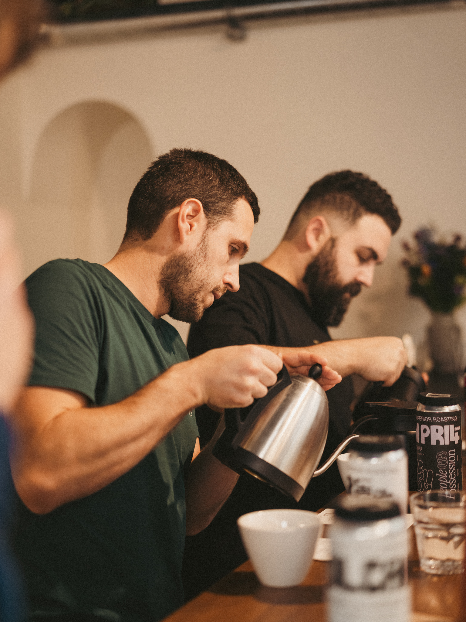 Florian et Umut, deux baristas passionnés, apportent leur expertise pour guider chaque client vers le café qui lui correspond. Leur passion se transmet aussi à travers les workshops hebdomadaires organisés à Horizon Café. Ces ateliers permettent aux curieux de découvrir les techniques du slow coffee et d’approfondir leur connaissance du café.